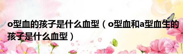 导读 大家好,今天小六子来为大家解答以下的问题,关于o型血的孩子是什么血型,o型血和a型血生的孩子是什么血型这个很多人还不知道,现在让我们一