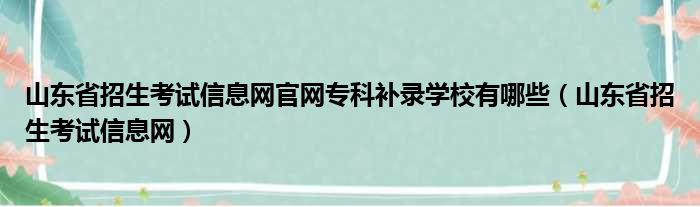 山东省招生考试信息网官网专科补录学校有哪些(山东省招生考试信息网)