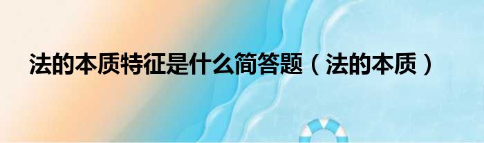 导读 大家好,今天小六子来为大家解答以下的问题,关于法的本质特征是什么简答题,法的本质这个很多人还不知道,现在让我们一起来看看吧!1、一、