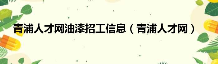 大家好,今天小六子来为大家解答以下的问题,关于青浦人才网油漆招工信息,青浦人才网这个很多人还不知道,现在让我们一起来看看吧!