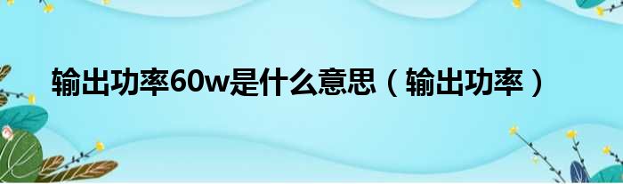 大家好,今天小六子来为大家解答以下的问题,关于输出功率60w是什么意思,输出功率这个很多人还不知道,现在让我们一起来看看吧!