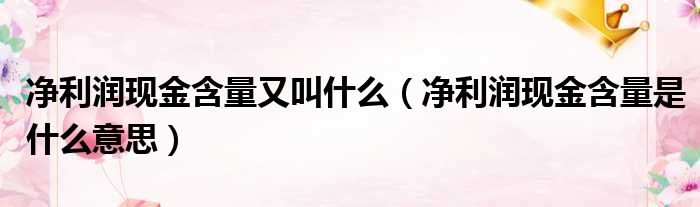 净利润现金含量又叫什么(净利润现金含量是什么意思)