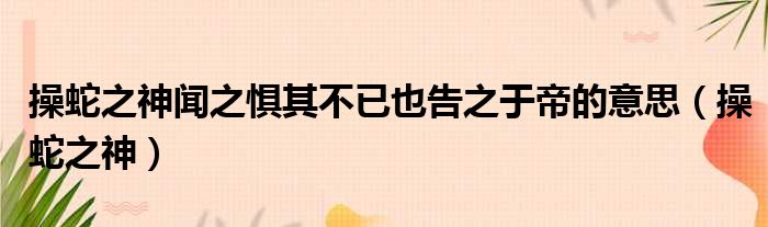 操蛇之神闻之惧其不已也告之于帝的意思(操蛇之神)