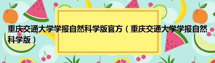 重庆交通大学学报自然科学版官方(重庆交通大学学报自然科学版)