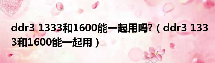 ddr3 1333和1600能一起用吗?(ddr3 1333和1600能一起用)