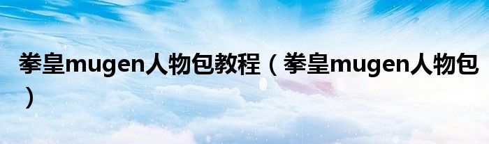 拳皇mugen人物包教程(拳皇mugen人物包)