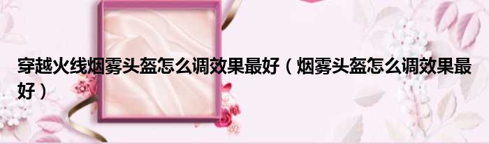 穿越火线烟雾头盔怎么调效果最好(烟雾头盔怎么调效果最好)