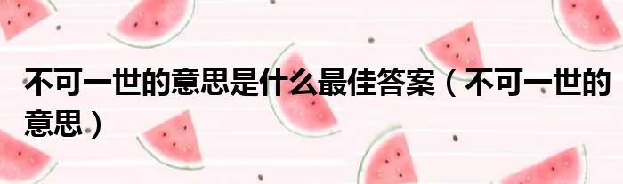 不可一世的意思是什么最佳答案(不可一世的意思)