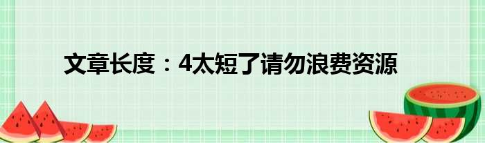 大家好,今天小六子来为大家解答以下的问题,关于文章长度:4太短了请勿浪费资源这个很多人还不知道,现在让我们一起来看看吧!