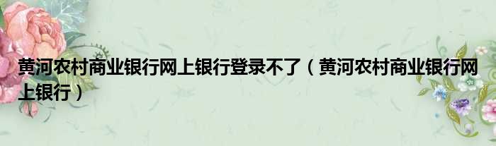 黄河农村商业银行网上银行登录不了(黄河农村商业银行网上银行)