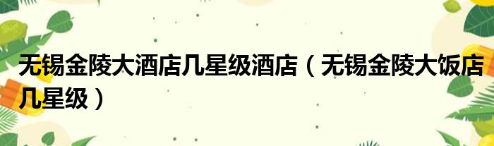 无锡金陵大酒店几星级酒店(无锡金陵大饭店几星级)