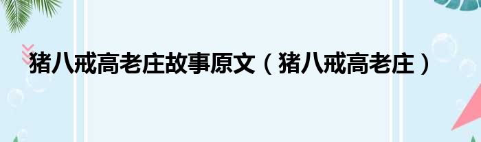 猪八戒高老庄故事原文(猪八戒高老庄)