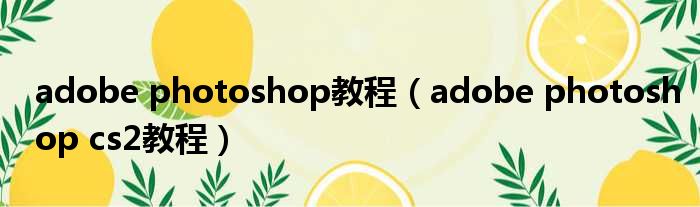 大家好,今天小六子来为大家解答以下的问题,关于adobe photoshop教程,adobe photoshop cs2教程这个很多人还不知道,现在让我们一起来看看吧!