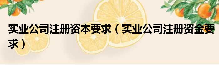 大家好,今天小六子来为大家解答以下的问题,关于实业公司注册资本要求,实业公司注册资金要求这个很多人还不知道,现在让我们一起来看看吧!
