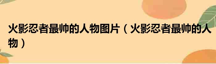 火影忍者最帅的人物图片(火影忍者最帅的人物)