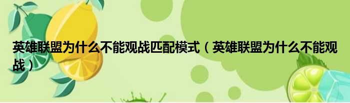 英雄联盟为什么不能观战匹配模式(英雄联盟为什么不能观战)