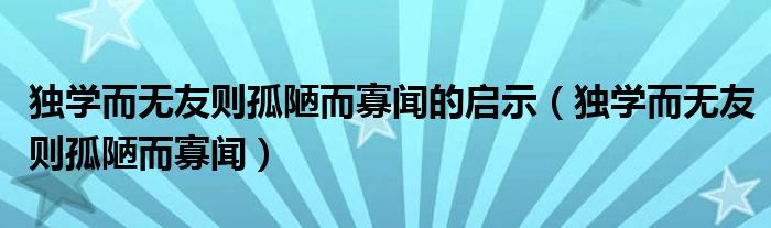 独学而无友则孤陋而寡闻的启示(独学而无友则孤陋而寡闻)