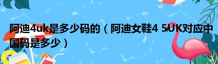 导读 大家好,今天小六子来为大家解答以下的问题,关于阿迪4uk是多少码的,阿迪女鞋4 5UK对应中国码是多少这个很多人还不知道,现在让我们一起来