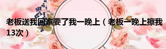 导读 大家好,今天小六子来为大家解答以下的问题,关于老板送我回家要了我一晚上,老板一晚上擦我13次这个很多人还不知道,现在让我们一起来看看