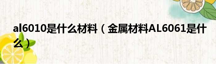 导读 大家好,今天小六子来为大家解答以下的问题,关于al6010是什么材料,金属材料AL6061是什么这个很多人还不知道,现在让我们一起来看看吧!1、