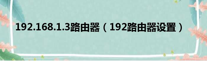 导读 大家好,今天小六子来为大家解答以下的问题,关于192 168 1 3路由器,192路由器设置这个很多人还不知道,现在让我们一起来看看吧!1、将路由