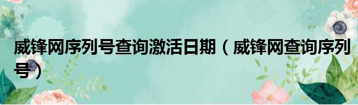 威锋网序列号查询激活日期(威锋网查询序列号)