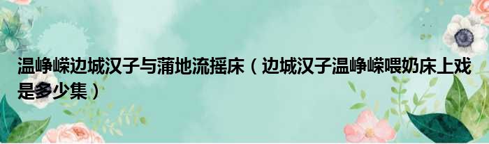 导读 大家好,今天小六子来为大家解答以下的问题,关于温峥嵘边城汉子与蒲地流摇床,边城汉子温峥嵘喂奶床上戏是多少集这个很多人还不知道,现在