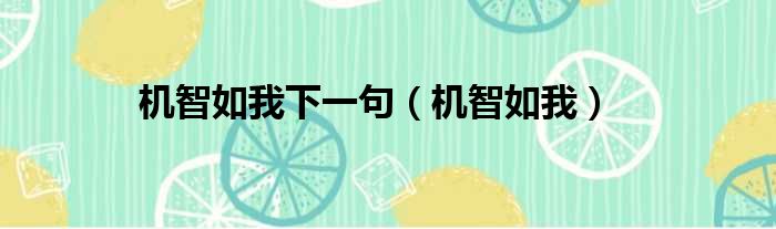 大家好,今天小六子来为大家解答以下的问题,关于机智如我下一句,机智如我这个很多人还不知道,现在让我们一起来看看吧!