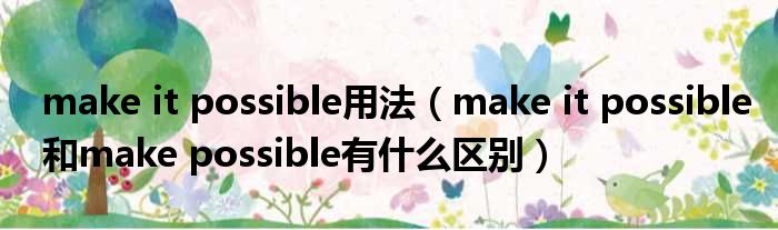2、2.make possible用法:作“也许的”解,指某事物或大或小、或有或无的、或发生或未发生的可能性,作此解时,只用作表语。