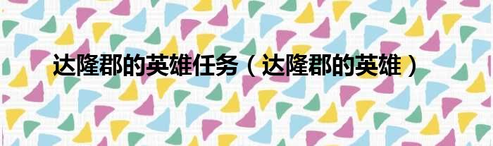 大家好,今天小六子来为大家解答以下的问题,关于达隆郡的英雄任务,达隆郡的英雄这个很多人还不知道,现在让我们一起来看看吧!