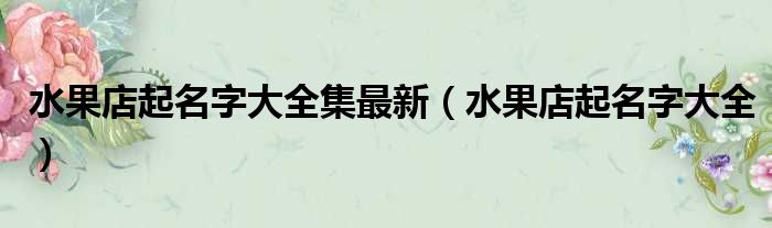 导读 大家好,今天小六子来为大家解答以下的问题,关于水果店起名字大全集最新,水果店起名字大全这个很多人还不知道,现在让我们一起来看看吧!1