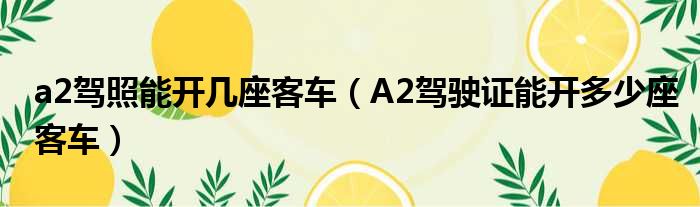 导读 大家好,今天小六子来为大家解答以下的问题,关于a2驾照能开几座客车,A2驾驶证能开多少座客车这个很多人还不知道,现在让我们一起来看看吧