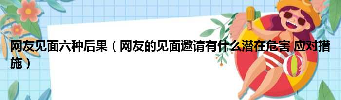 导读 大家好,今天小六子来为大家解答以下的问题,关于网友见面六种后果,网友的见面邀请有什么潜在危害 应对措施这个很多人还不知道,现在让我