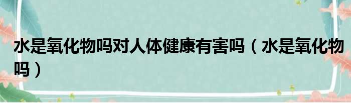 水是氧化物吗对人体健康有害吗(水是氧化物吗)