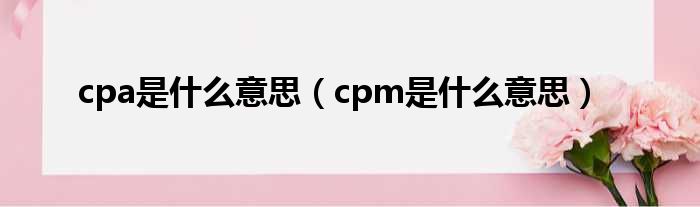 导读 大家好,今天小六子来为大家解答以下的问题,关于cpa是什么意思,cpm是什么意思这个很多人还不知道,现在让我们一起来看看吧!1、CPM(Cost