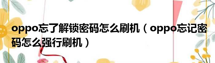 oppo忘了解锁密码怎么刷机(oppo忘记密码怎么强行刷机)