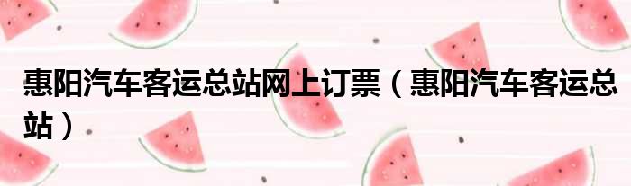 惠阳汽车客运总站网上订票(惠阳汽车客运总站)