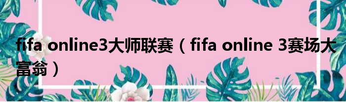 大家好,今天小六子来为大家解答以下的问题,关于fifa online3大师联赛,fifa online 3赛场大富翁这个很多人还不知道,现在让我们一起来看看吧!