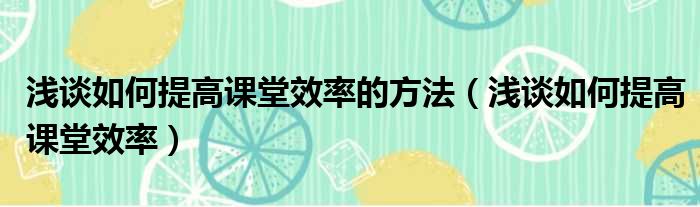 浅谈如何提高课堂效率的方法(浅谈如何提高课堂效率)