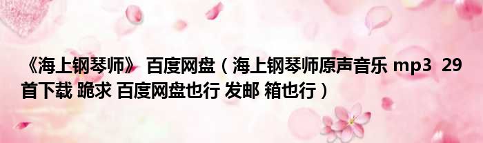《海上钢琴师》 百度网盘(海上钢琴师原声音乐 mp3 29首下载 跪求 百度网盘也行 发邮 箱也行)