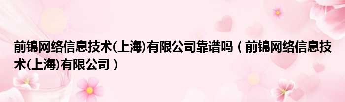 前锦网络信息技术(上海)有限公司靠谱吗(前锦网络信息技术(上海)有限公司)