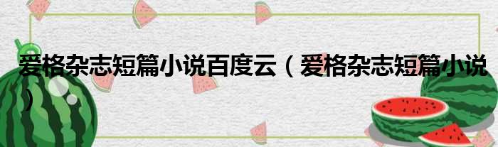 爱格杂志短篇小说百度云(爱格杂志短篇小说)