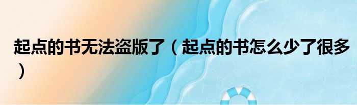 导读 大家好,今天小六子来为大家解答以下的问题,关于起点的书无法盗版了,起点的书怎么少了很多这个很多人还不知道,现在让我们一起来看看吧!1