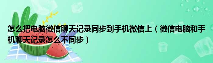 怎么把电脑微信聊天记录同步到手机微信上(微信电脑和手机聊天记录怎么不同步)