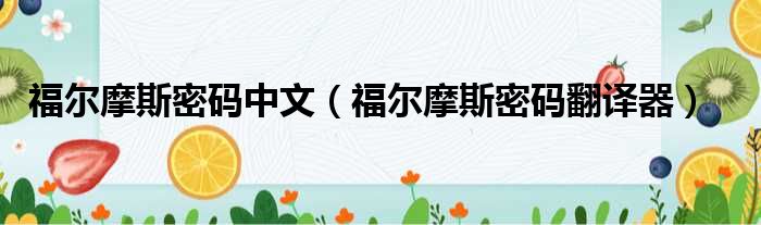 福尔摩斯密码中文(福尔摩斯密码翻译器)