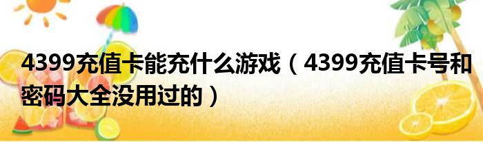 导读 大家好,今天小六子来为大家解答以下的问题,关于4399充值卡能充什么游戏,4399充值卡号和密码大全没用过的这个很多人还不知道,现在让我们
