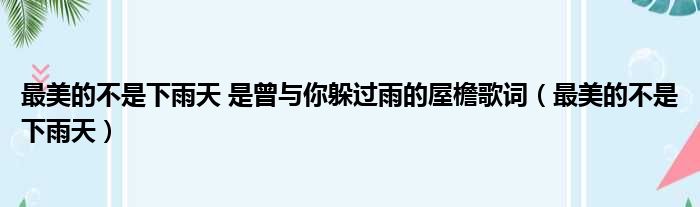 最美的不是下雨天 是曾与你躲过雨的屋檐歌词(最美的不是下雨天)