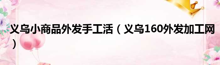 大家好,今天小六子来为大家解答以下的问题,关于义乌小商品外发手工活,义乌160外发加工网这个很多人还不知道,现在让我们一起来看看吧!