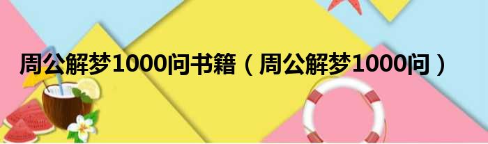 大家好,今天小六子来为大家解答以下的问题,关于周公解梦1000问书籍,周公解梦1000问这个很多人还不知道,现在让我们一起来看看吧!