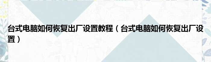 台式电脑如何恢复出厂设置教程(台式电脑如何恢复出厂设置)
